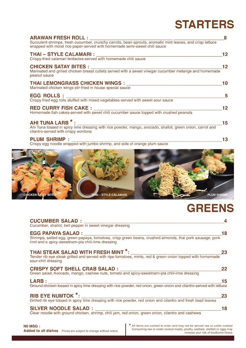 Arawan Thai Bistro and Dessert Menu